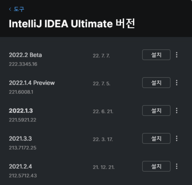 영구 폴백 라이선스를 얻으면 jetbrain tool box에서 아래와 같이 본인에게 활성화된 버전을 확인 할 수 있습니다.